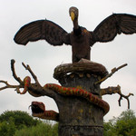 Im 3000-Seelen-Dorf Jaderberg, direkt an der A 29 beim Drei-Kreise-Eck Friesland-Ammerland-Wesermarsch, befindet sich seit 1996 der Jaderpark in seinem heutigen Gewand. Doch bereits im zweiten Drittel des 17. Jahrhunderts entwickelte sich aus einer ehemaligen Landköterei eine Schankwirtschaft. Mitte des 18. Jahrhunderts wurde von ihnen auch die Linde gepflanzt, die heute als Schirmlinde das Wahrzeichen ist. 1950 wurde ein Privatzoo aufgebaut. Lange rangierte der Tierpark auf Platz Zwei unter den privat betriebenen Zoos Deutschlands. In den achtziger Jahren konnte der Jaderberger Zoo den neuen Anforderungen nicht mehr gerecht werden und so wurde1995 ein neues Konzept entwickelt, vom einstigen reinen Zoo hin zu einem ein Tier- und Freizeitpark. Starten wir nun unseren Rundgang und werfen einen Blick auf die interessantesten Tiere und Attraktionen, die der Jaderpark zu bieten hat. Zunächst vorbei an den "Lisztäffchen" und der "Katta-Anlage", gelangt man zu der bereits angesprochenen Linde. Diese ist heutzutage mit einem solch dichten Blätterdach bewachsen, dass ein Aufenthalt bei Regen unter ihr, einen adäquaten Schutz und eine Alternative zu üblichen Unterstellmöglichkeiten bietet. Hier befinden sich auch die "Chile Flamingos", die als Namensgeber für das Parkrestaurant, der "Flamingo-Oase" dienen. Hier befinden sich auch ein Kiosk und der obligatorische Parkshop mit Merchandise. Im Restaurant wird ein vielfältiges Speisenangebot zu zivilen Preisen bereitgehalten. Einziger Kritikpunkt: Leider gab es das gesamte Speisenangebot nur einschließlich bis zur Mittagszeit. Direkt gegenüber ein moderner Spielplatz für Kleinkinder. Es folgen auf unserem Rundgang schon kurze Zeit später die Großkatzen. Die "Löwen" können sich hier auf einer Freianlage bewegen und daran angeschlossen befindet sich noch ein Nacht- und Winterhaus. Die Tiere sind hier nicht nur durch Zäune, sondern auch durch große Glasscheiben zu sehen. Weiter zu den "Schneeeulen", "Tapiren", "Geparden" und "Pinguinen", erreicht man das "Tropenhaus" mit "Gelber Anakonda" und "Zwergflußpferd", welches sich auch in einem Aussengehege aufhalten kann. Und kurz darauf befindet sich der Besucher mitten im Freizeitparkbereich. Zunächst sticht der "Sky Glider" hervor. Eine originelle Flugschaukel, bei der die Gondeln durch Treten von Fahrradpedalen bis zum Überschlag gebracht werden. Einige Attraktionen auch für kleinere Kinder, wie der "Kinder-Eisenbahn", "Marienkäferbahn", "elektrischen Pferdereitbahn" oder der "Kanufahrt" durch das Indianerland. Die Größeren können sich auf Attraktionen wie der "Holzwurm-Achterbahn" oder der "Wildwasserbahn" wagen. Für mehrere Alterklassen bieten die zwei "elektronischen Theater" die entsprechende Unterhaltung. Das eine Theater zeigt das Programm "Auf dem Jaderhof" und das andere zeigt die "Vogelhochzeit". Die Theater spielen abwechselnd jede Stunde für jeweils 20 Minuten. Einige Rundfahrgeschäfte werden geboten, aber auch Angebote zur Aktivitätsanregung, wie der Selbstfahr-Hochbahn "Albatros", wo die Besucher auf einer Fahrstrecke von 250 Metern in 4 Meter Höhe die Wagen mit Pedalen aus eigener Kraft bewegen können. Oder die riesigen "Sprunghügel" für Kleine und Große, die gleich mit 2 Anlagen daherkommen, einmal auf 2,5 Metern und auf 1 Meter Höhe, Unser Rundgang führt dann vorbei an "Streichelgehegen" zur "Afrikaanlage". Mit dem "Jade-Express", einer Westerneisenbahn, beginnt eine Rundfahrt direkt am "Giraffenhaus". Auf einer Strecke von 1,5 km, erkundet man so bequem die 4 Hektar große "Affrikaanlage". Während der Fahrt erhält der Besucher Erläuterungen zu den Tieren. Die "Afrikaanlage" bietet "Giraffen" (Jungtiere in 2011), "Zebras" und "Strausse". Es besteht die Möglichkeit an einer weiteren Station bei der "Mowglis Flußfahrt" auszusteigen oder wieder bis zum "Giraffenhaus" zurückzufahren. Dann ist es an der Zeit die gesamte "Afrikaanlage" auch noch zu Fuß zu erkunden. Unterwegs bieten u.a. "Wasserkissen" mit Dinosaurier und Wasserschlange Spielmöglichkeiten für die Kinder. Um sich aus der Vogelperspektive einen Überblick zu verschaffen, bietet der Giraffenturm "Hungrige Giraffe" eine Fahrt auf 16 Meter Höhe. Dabei drehen sich die Gondeln beim Heben im Kreis. Wieder auf dem festen Boden angekommen und einige Meter weiter, befindet sich "Mowglis Flußfahrt". Diese Rundboote mit elektronischen Spielszenen aus dem Dschungelbuch sorgen für eine gelungene Abwechslung. Vor allem der Unterhaltung des Geiers und der Schlange auf dem Baum vor der Attraktion sollte man lauschen - und einen Jaderpark-Song gibt es auch noch als Abschluss. Und sollte das Wetter mal nicht so mitspielen, bietet die "Spielscheune" ein Kletterlabyrinth, Hüpfelemente, ein Ballspielfeld, Babyland und vieles mehr. Der gesamte Park ist sehr grün, so das man auch bei sehr warmen Wetter den Park besuchen kann, da immer eine Möglichkeit besteht einen Schattenplatz aufzusuchen. Es sind eine große Anzahl Bänke und Stühle für die kleine Verschnaufpause aufgestellt. So ist der Jaderpark unserer Meinung nach sehr gut aufgestellt und gerade Familien können dort einen erlebnisreichen Tag verbringen.